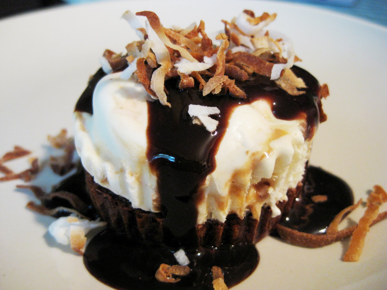 To serve: Unwrap cupcake, drizzle with chocolate syrup and sprinkle with toasted coconut. (Try no to drool on your plate, especially if you have guests.)
